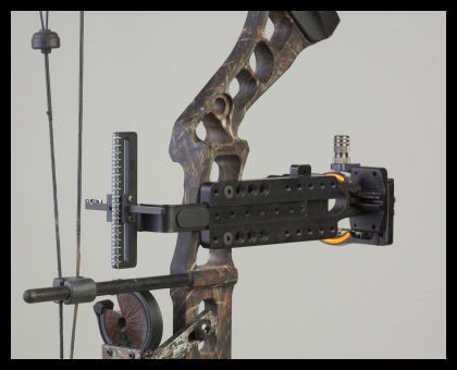 The top of the bow rocks rearward accomplishing the same as moving your bow arm up or down the pins will keep popping up dead center of the alignment dots. You will not see all your pins at the same time. You don't need an anchor point to shoot the Peep Eliminator® with consistent accuracy, allowing you to shoot bending around a tree to shoot behind you or bending under a limb. When you have the adrenalin flowing, as soon as the pin hits the vitals you release the arrow. It may have only been a 15 or 20 yards shot, you hit the animal in the shoulders or the stomach. You had the pin where it belonged but you were torquing the bow or had your head in the wrong position, or both. You didn't know that until you made the bad shot. Too late. There is no margin for error for aiming using the Peep Eliminator®. The Peep Eliminator® will obscure the front pin if you torque the bow or have your head in the wrong position as when you sighted in your bow, making you correct your mistake before you shoot. You will correct your mistake in seconds and make an accurate shot. I know of no other rear alignment sight that will do this for the archer.